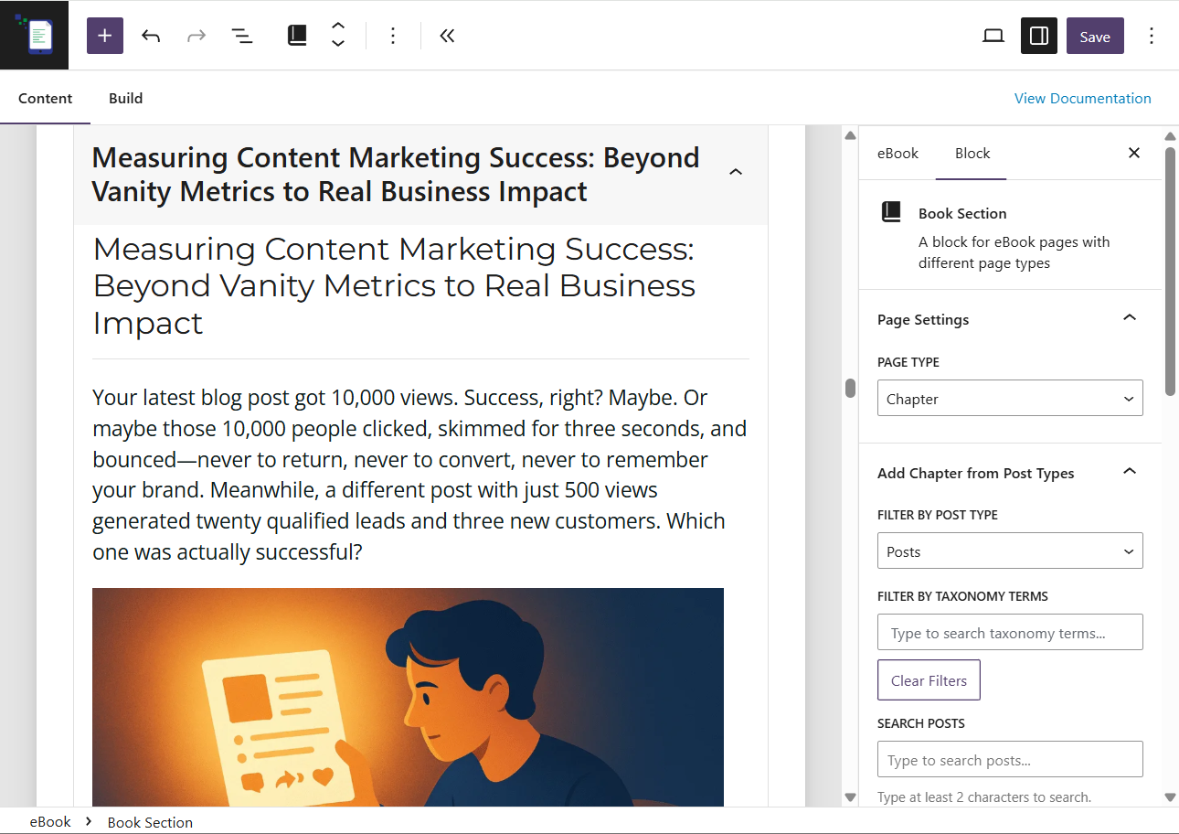 Got amazing content scattered across your WordPress site? The eBook Crafter plugin brings it all together into beautiful eBooks. Gather your best posts, edit the content and export as PDF. It’s that easy!